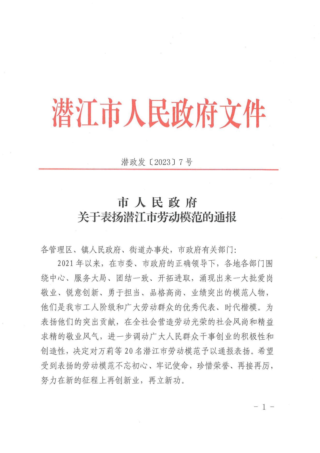 4月27日(rì),潛江市人(rén)民(mín)政府發布《市人(rén)民(mín)政府關于表揚潛江市勞動模範的通報》 (潛政 發〔2023〕7号),對20名潛江市勞動模範予以通報表揚。熱(rè)烈祝賀武漢市沃農肥業有限公司程豔董事(shì)長榮獲“潛江市勞動模範”榮譽稱号!